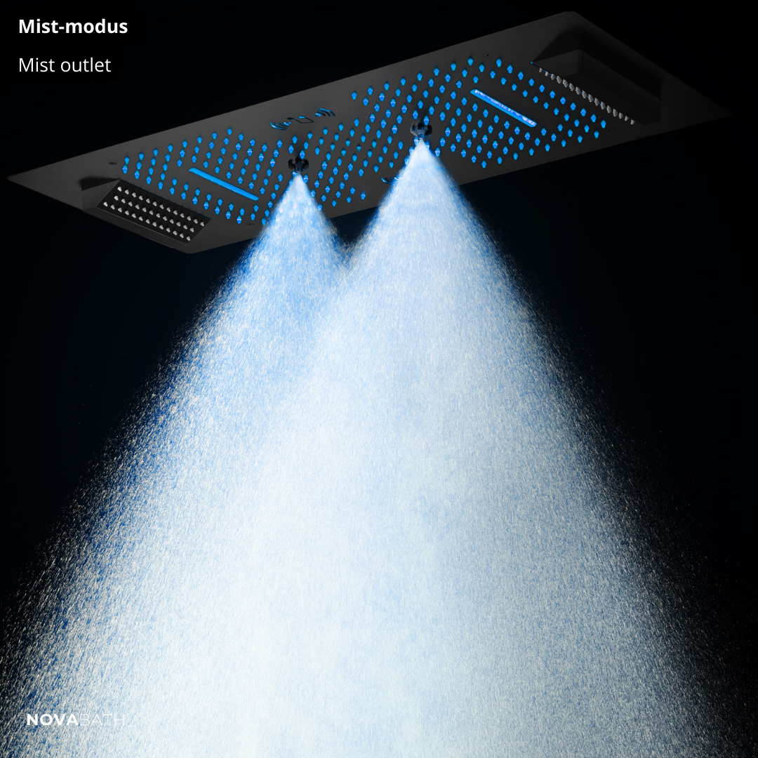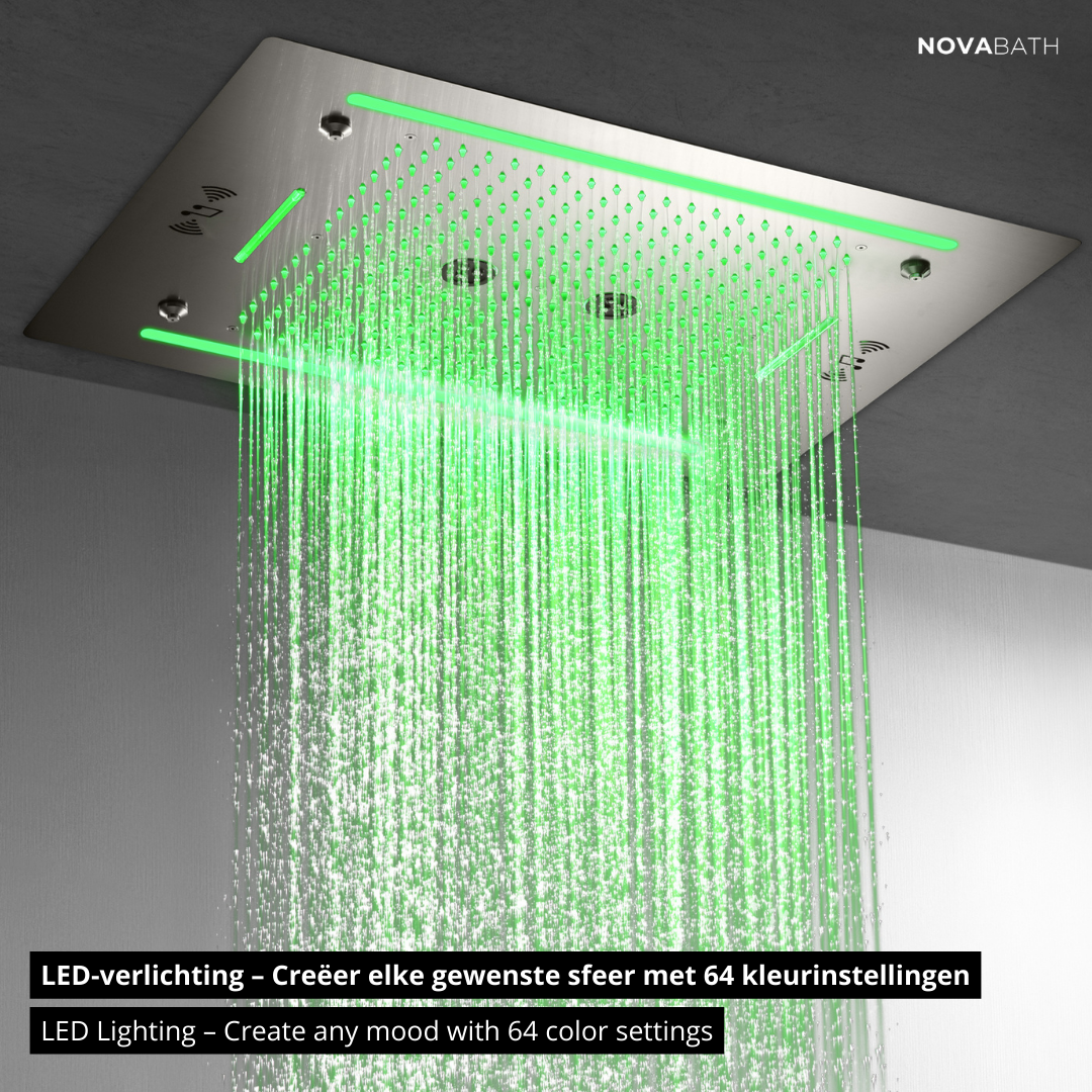 6-in-1 Thermostatische Inbouw Regendoucheset Sylvia – Bluetooth & Speakers – LED Verlichting – Massagejets - Zwart