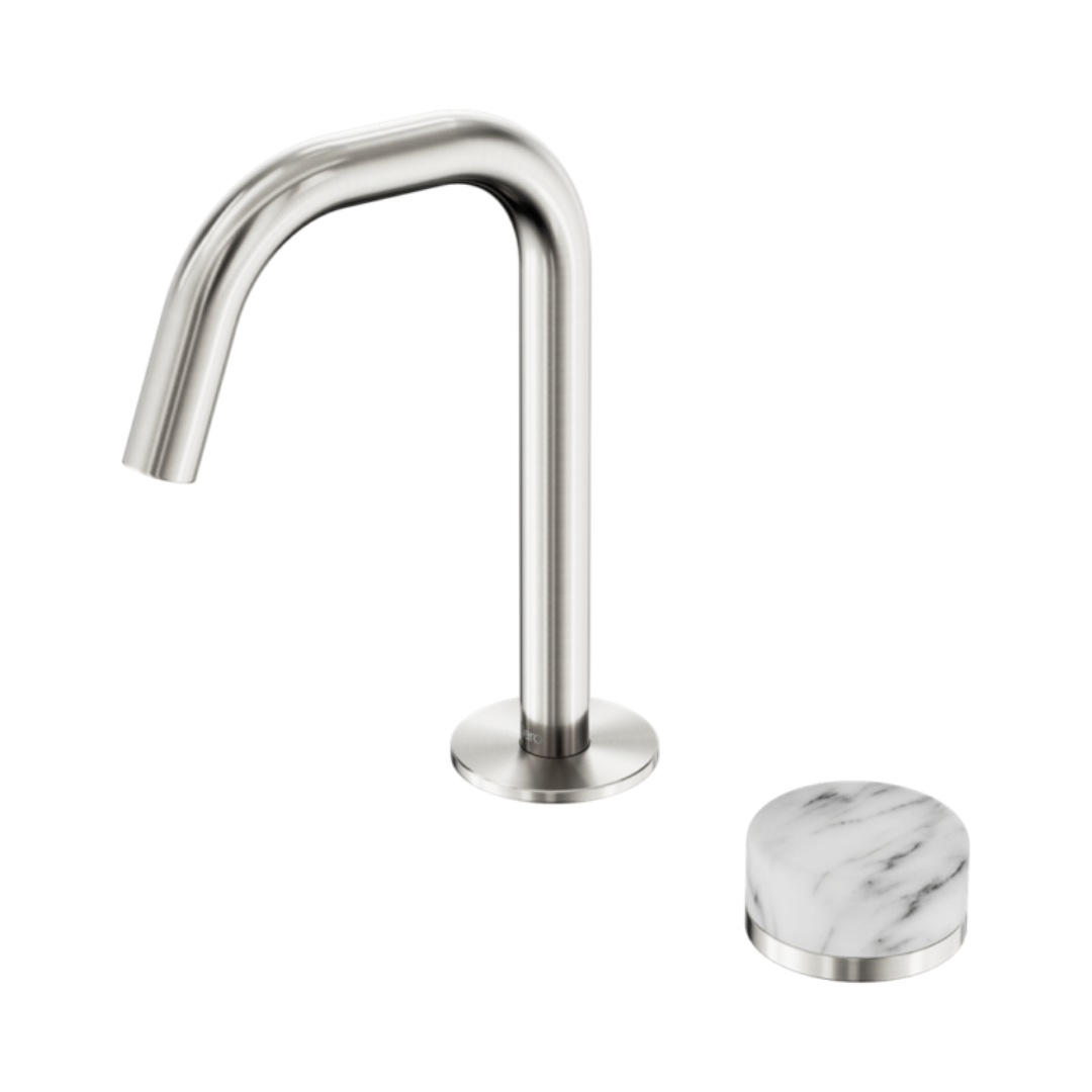 Inbouw Wastafelkraan Sorrento – Arabescato Corchia – 2-Gats – Rechte (edge) uitloop – Brushed nickel