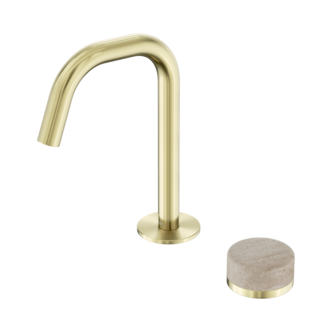 Inbouw Wastafelkraan Sorrento – Rome Travertine – 2-Gats – Rechte (edge) uitloop – Brushed gold