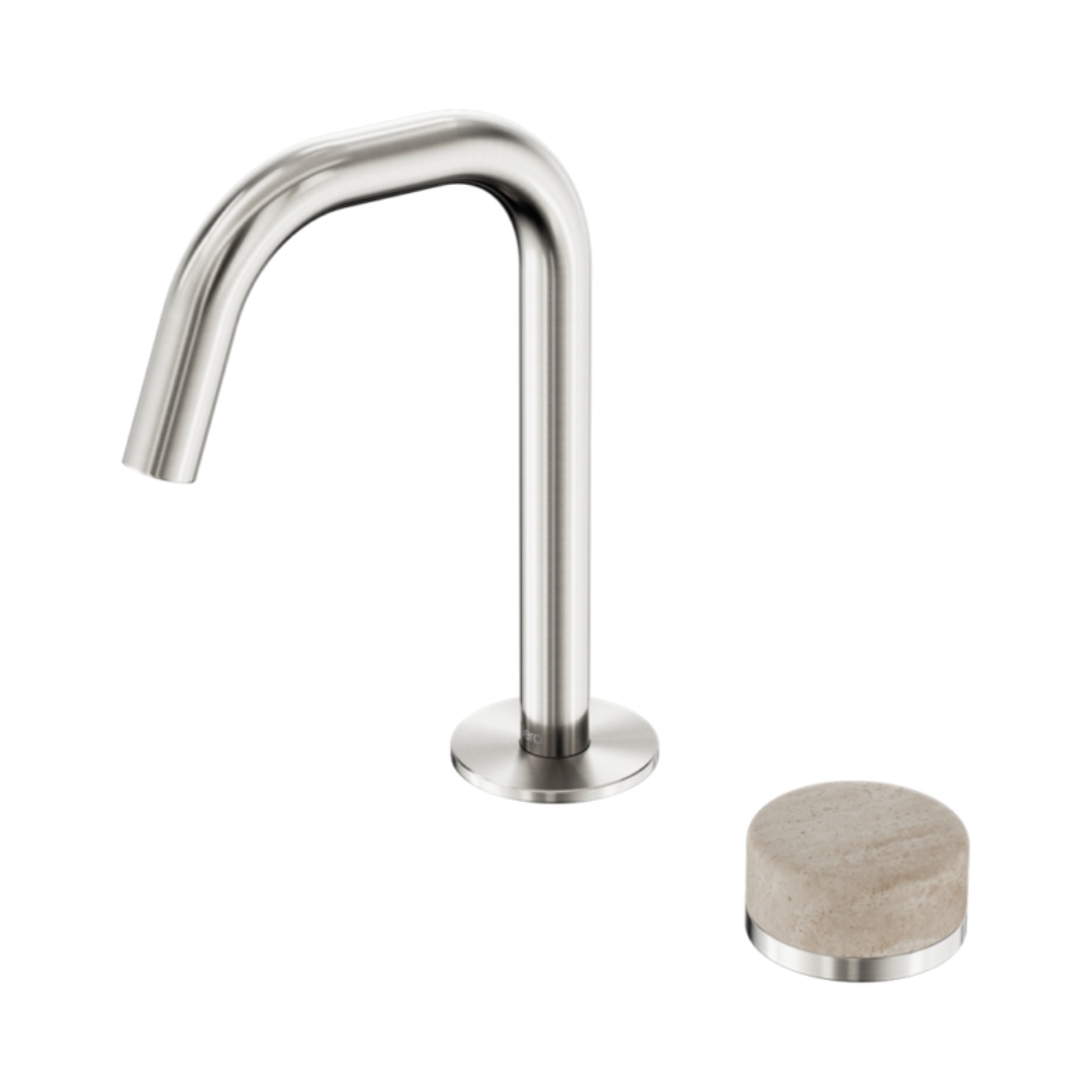 Inbouw Wastafelkraan Sorrento – Rome Travertine – 2-Gats – Rechte (edge) uitloop – Brushed nickel